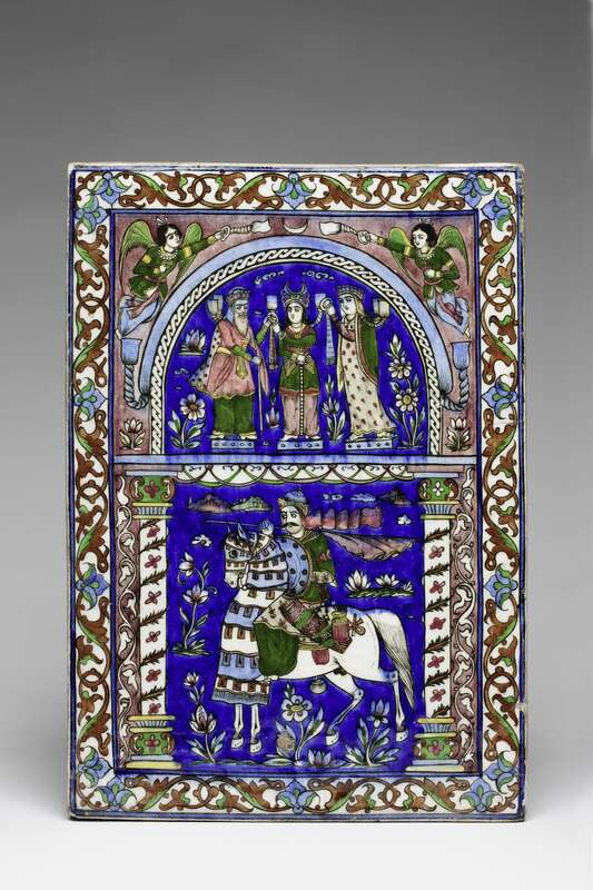 Bildfliese mit Darstellung eines sasanidischen Felsreliefs mit der Investitur Chosrau II. (590-628)2. Hälfte 19. Jh.