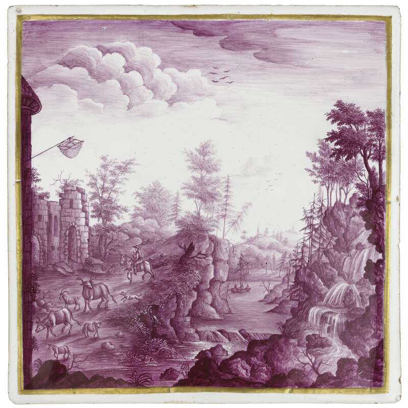 Fayence, Aufglasurbemalung in Manganviolett und Gold
