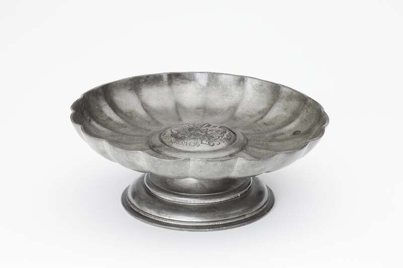 Zinn, gegossen, graviert, montiert