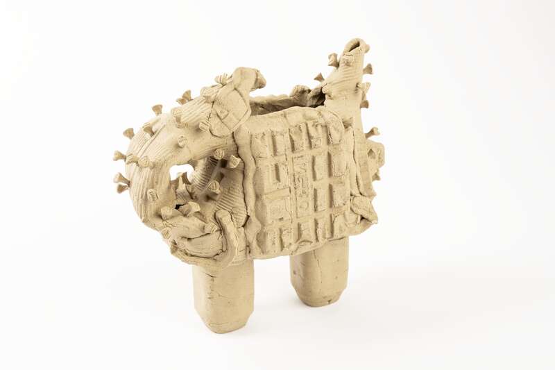 Keramik, gebaut, unglasiert, gebrannt, aus reyceltem Ton