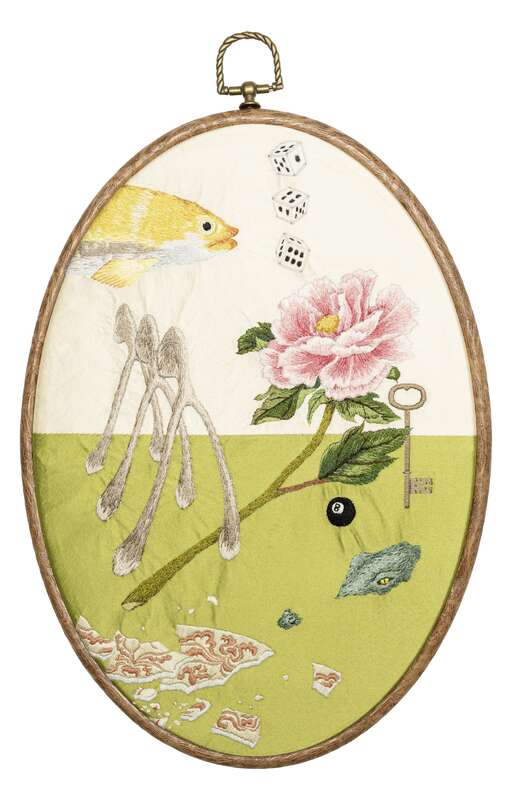 Seide, Stickerei: Seidenfaden und Seidenbänder; Bändchenstickerei und Tambourierstickerei (Kettenstick)