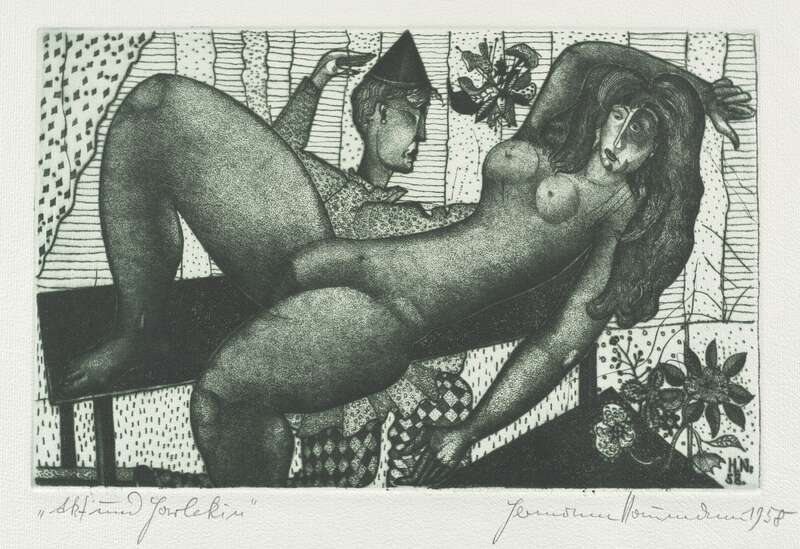 Buch, 216 Seiten auf Japanvelin im Pappeinband mit Holzschnitten und farbigen Vorsatzpapier, beigeben Originalgraphiken (Lithografie und Radierung), Autotypien und Strichätzungen
