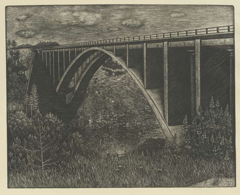 1. Teufelstalbrücke bei Klosterlausnitz-Hermsdorf i. Thür., aus: Paul Burghardt, Beton. Zehn Schieferstiche1941
