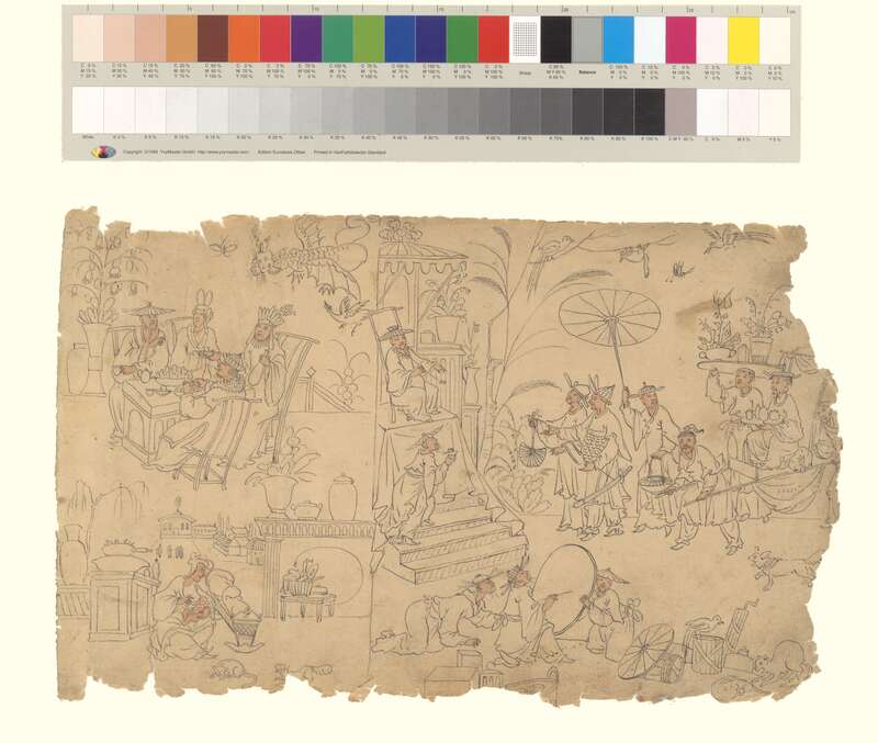 (087) Figurenreiche Szenen und Einzelfiguren; Blatt 12 aus einem Konvolut mit Musterzeichnungen aus der Malstube der Porzellan-Manufaktur Meissen (sog. Schulz-Codex)um 1722/26