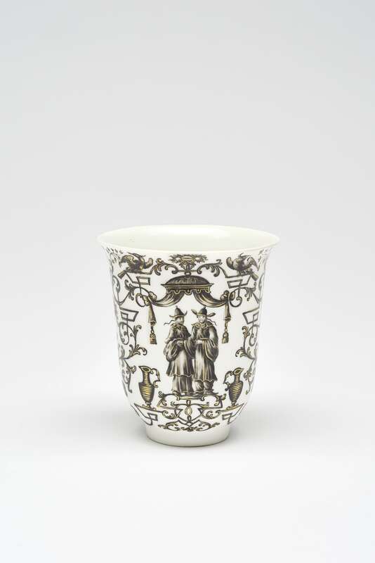 Porzellan, Schwarzlotmalerei mit Vergoldung
