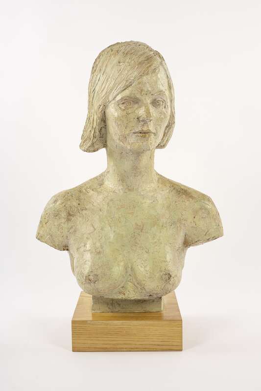 Ebenso wie das malerische verdient auch das umfängliche plastische Werk größere Aufmerksamkeit, kommt ihm doch eine Initialwirkung für seine künstlerische Entwicklung zu. Es reicht von Bauplastik und großformatigen Objekten im öffentlichen Raum bis hin zu kleinen Kabinettstücken; von figürlich-typologisierter Gebrauchsplastik der sogenannten „KaDe-Büsten“ (um 1950, Inv.-Nr. 2019.1036) für den Düsseldorfer Friseursalon Karl Degenhardt, über realistische Portraits wie das von Helga Luzens (1973, Inv.-Nr. 2020.973), deren fein modellierte Gesichtszüge und Jugendlichkeit tiefe emotionale Bindung ausdrücken, bis hin zur strengen Abstraktion der Stahlplastik „Kopf“ (1985, Inv.-Nr. 2018.559).
